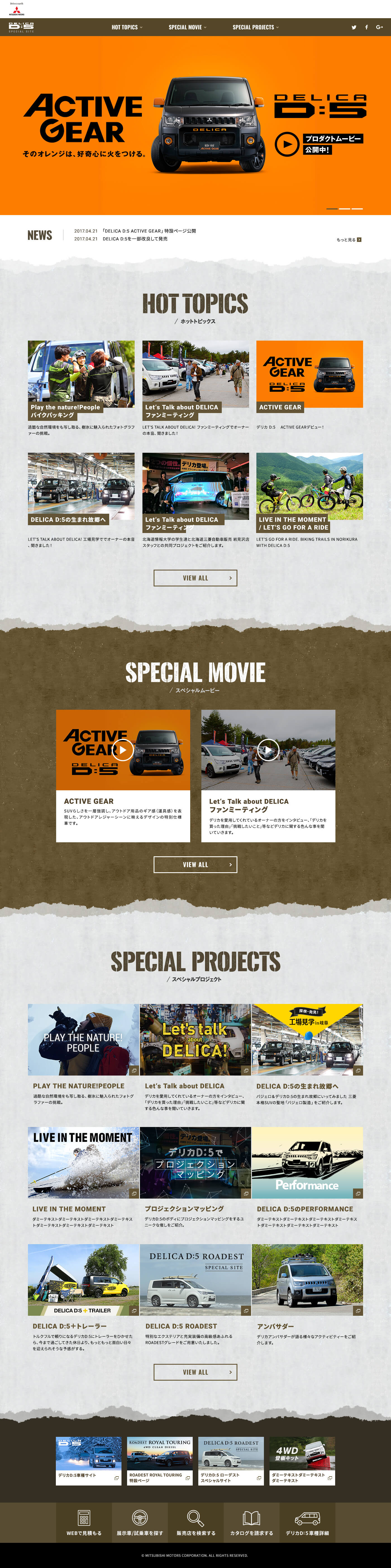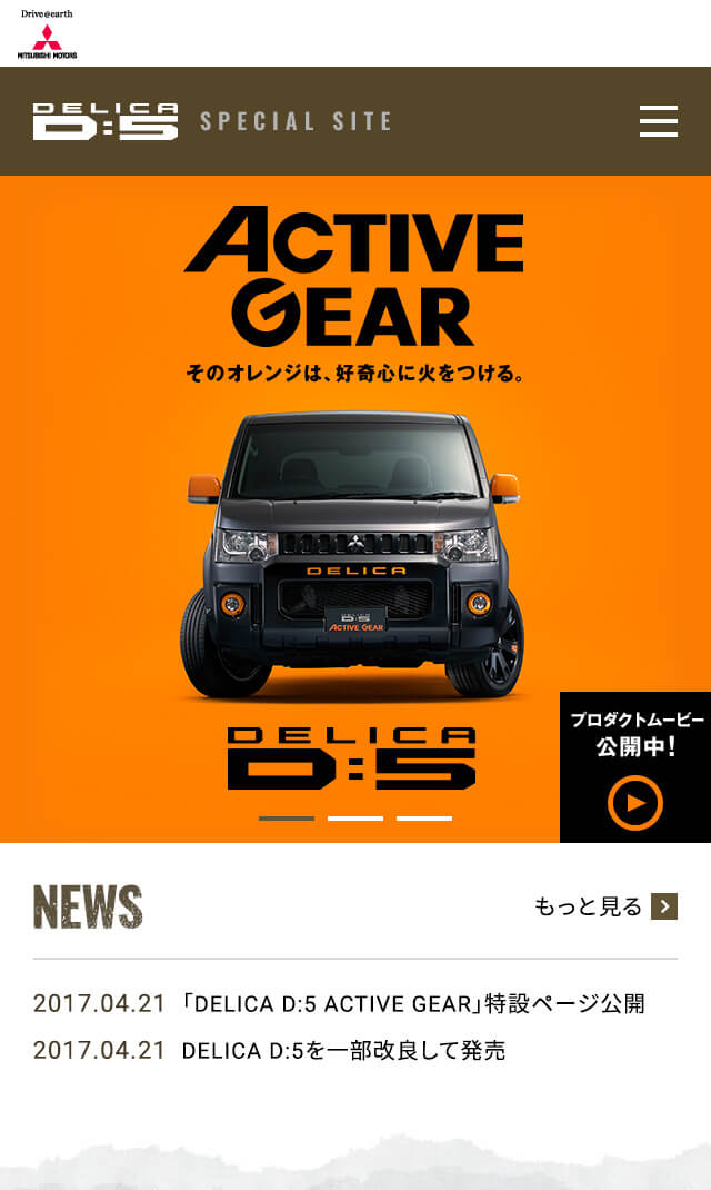 - 三菱自動車「デリカD:5」の魅力をまとめたコンテンツ「デリカD:5 スペシャルサイト」のアートディレクション、WEBデザインを担当しました。