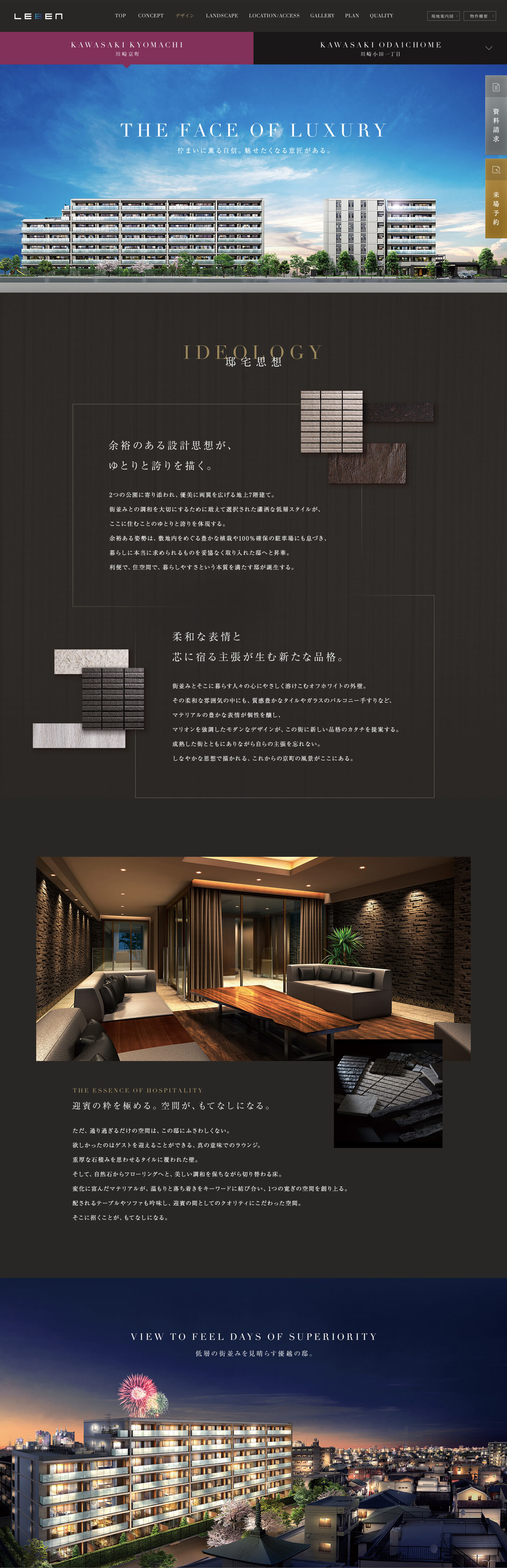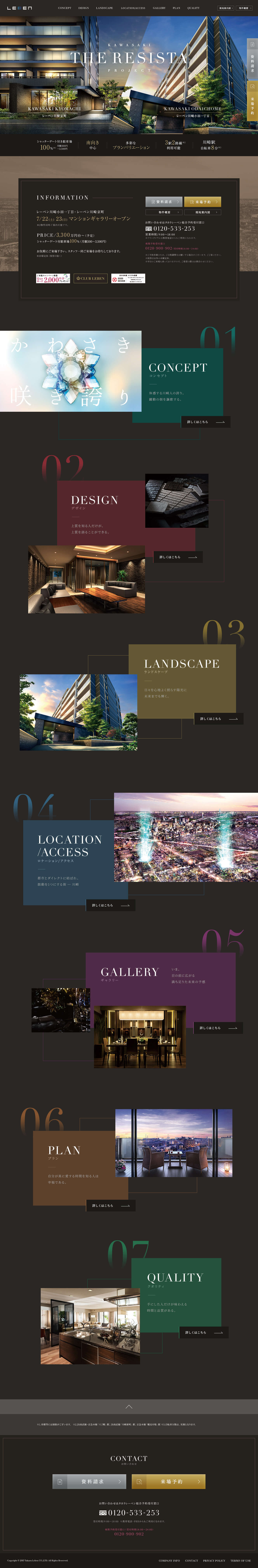 - 川崎市に誕生したタカラレーベンの新築分譲マンション「レーベン川崎京町」「レーベン小田一丁目」2物件同時プロジェクト「KAWASAKI THE RESISTA」のブランドサイトのアートディレクション、WEBデザインを担当しました。